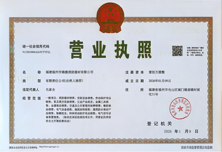 立足福州,辐射周边,我们始终秉持“责任重于泰山”的消防理念,以优质的产品、专业的服务、合理的价格,赢得了广大客户的信赖与支持。未来,福建福州市锦塍消防器材有限公司将持续深耕消防领域,不断优化产品体系、提升服务品质,紧跟消防行业技术发展趋势,致力于成为福州消防领域值得信赖的专业化供应商,为构建平安福州、筑牢城市消防安全屏障贡献全部力量。